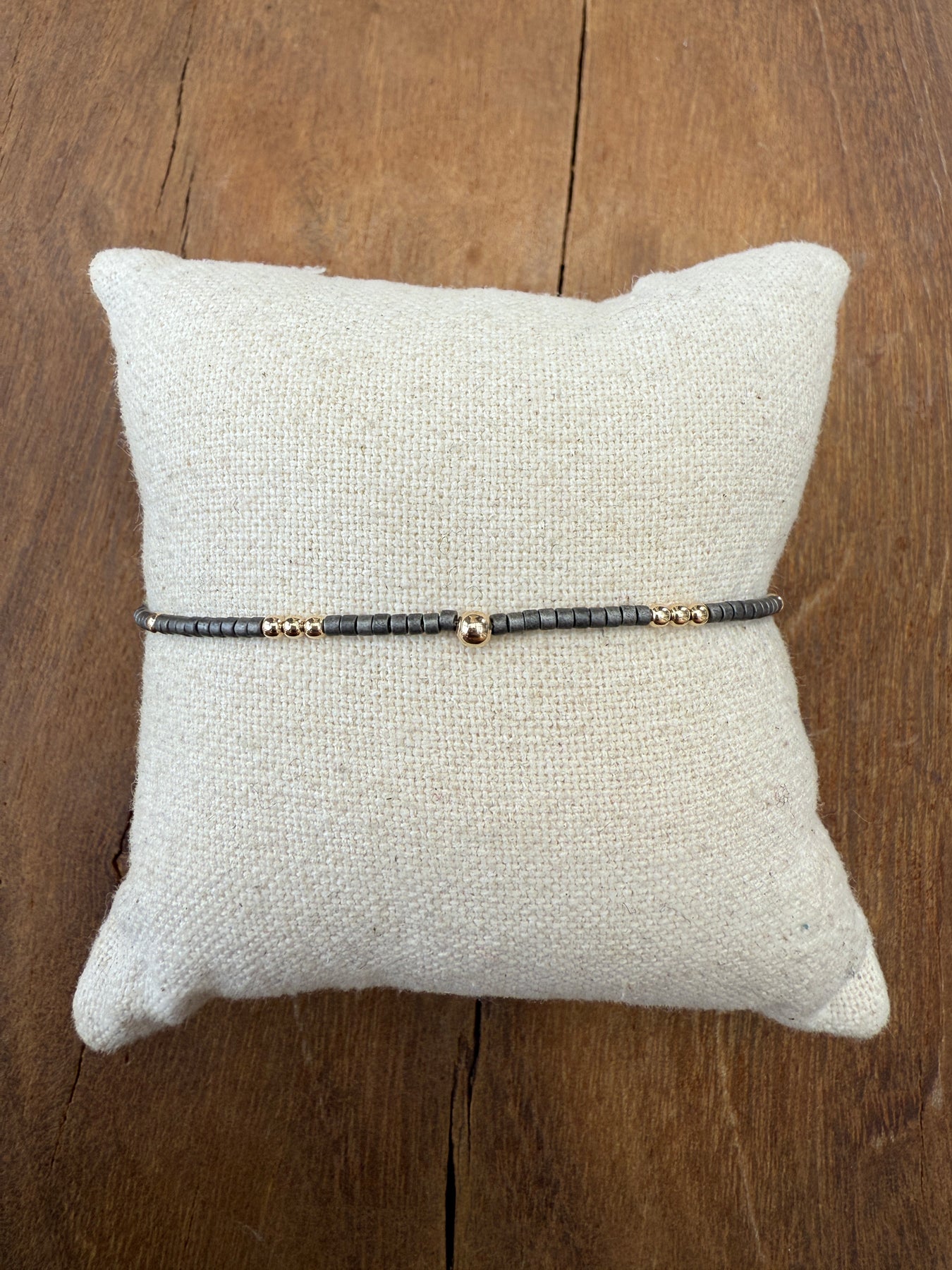This 2mm Newport stretch bracelet features 14k gold-filled beads paired with handpicked natural colors for a refined, elegant look. Its minimalist design makes it perfect for stacking, gifting, or everyday wear.