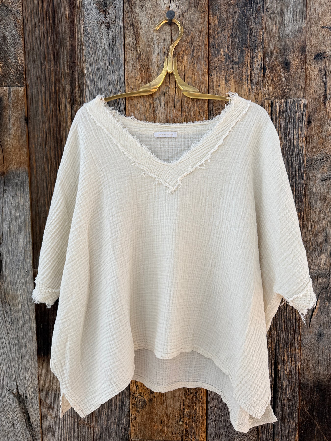 Milio Milano Raw Edge Gauze V-Neck Top Butter