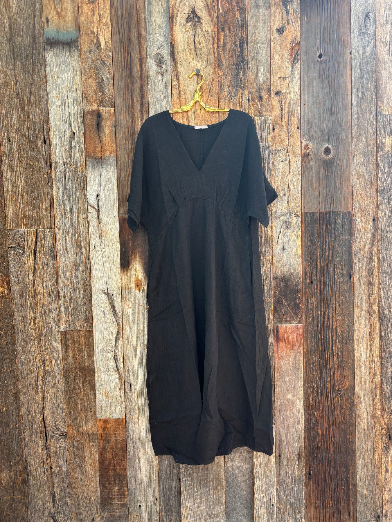 Milio Milano Solid Linen V-Neck Dolman Maxi Dress Black
