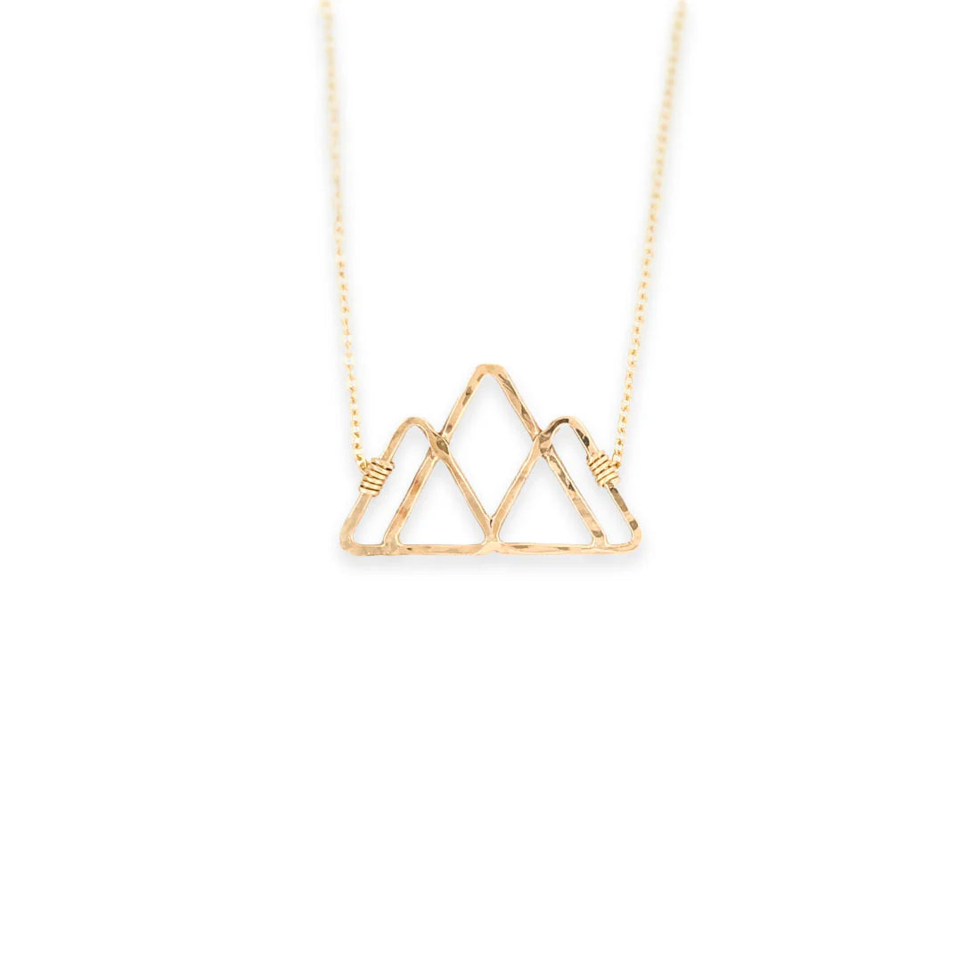Three simple triangles form the Out Here Necklace. Made as an homage to the beautiful mountains of Steamboat Springs, this piece serves as a keepsake for those special moments we make in the mountains.
