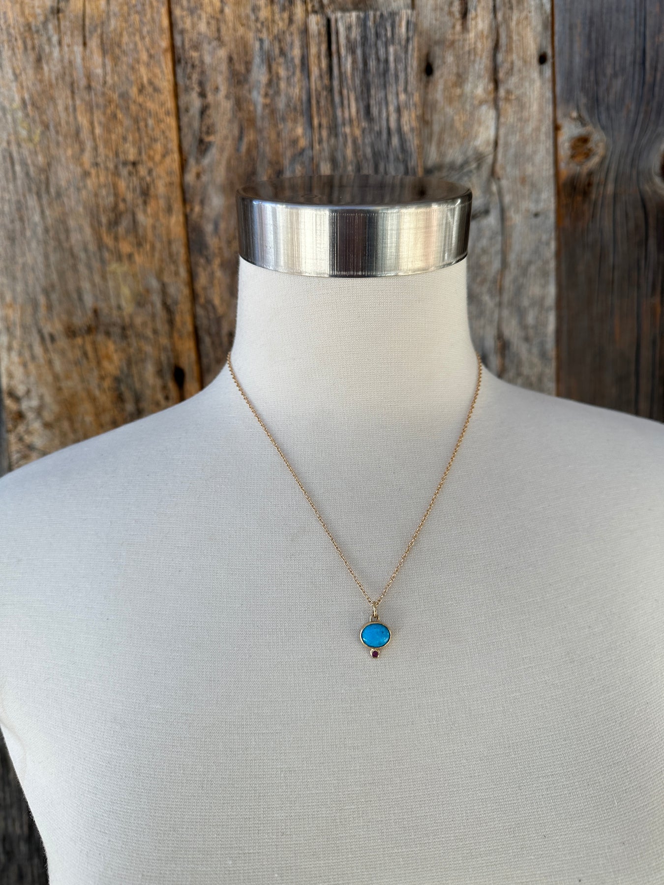 Robin M 14K Turquoise & Ruby Necklace 18"