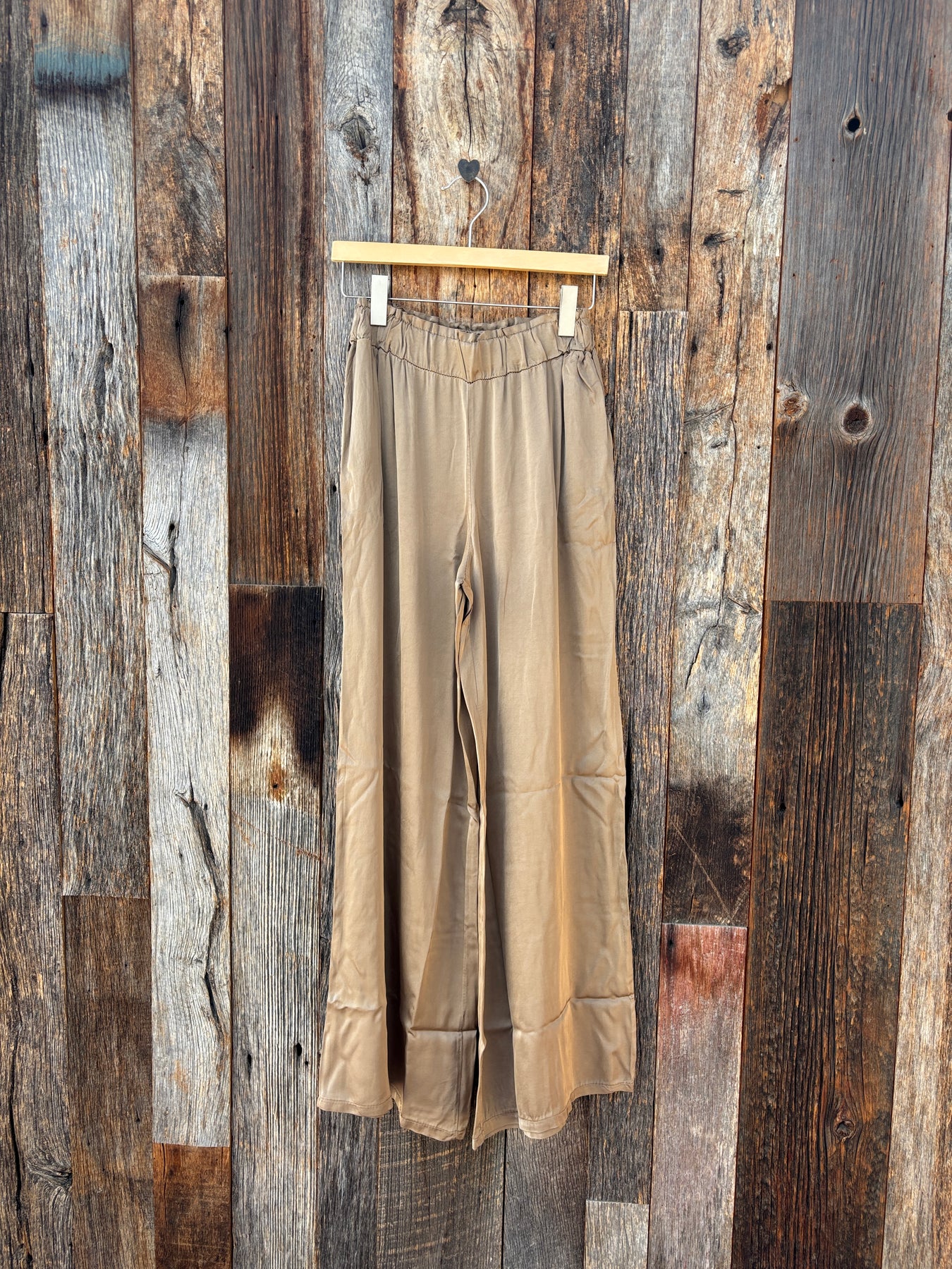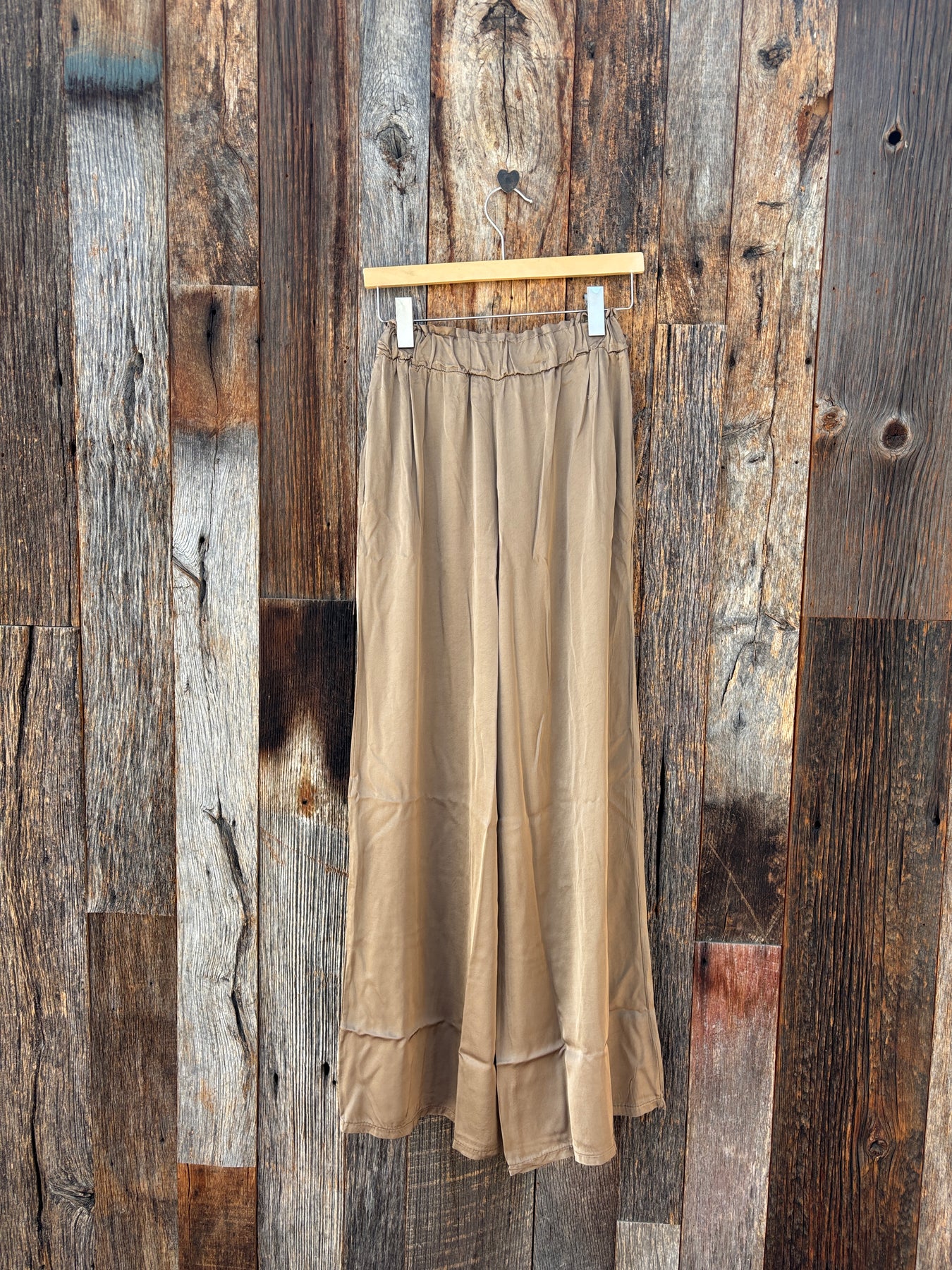 Milio Milano Italian Silky Viscose Elastic Waist Palazzo Pant Camel