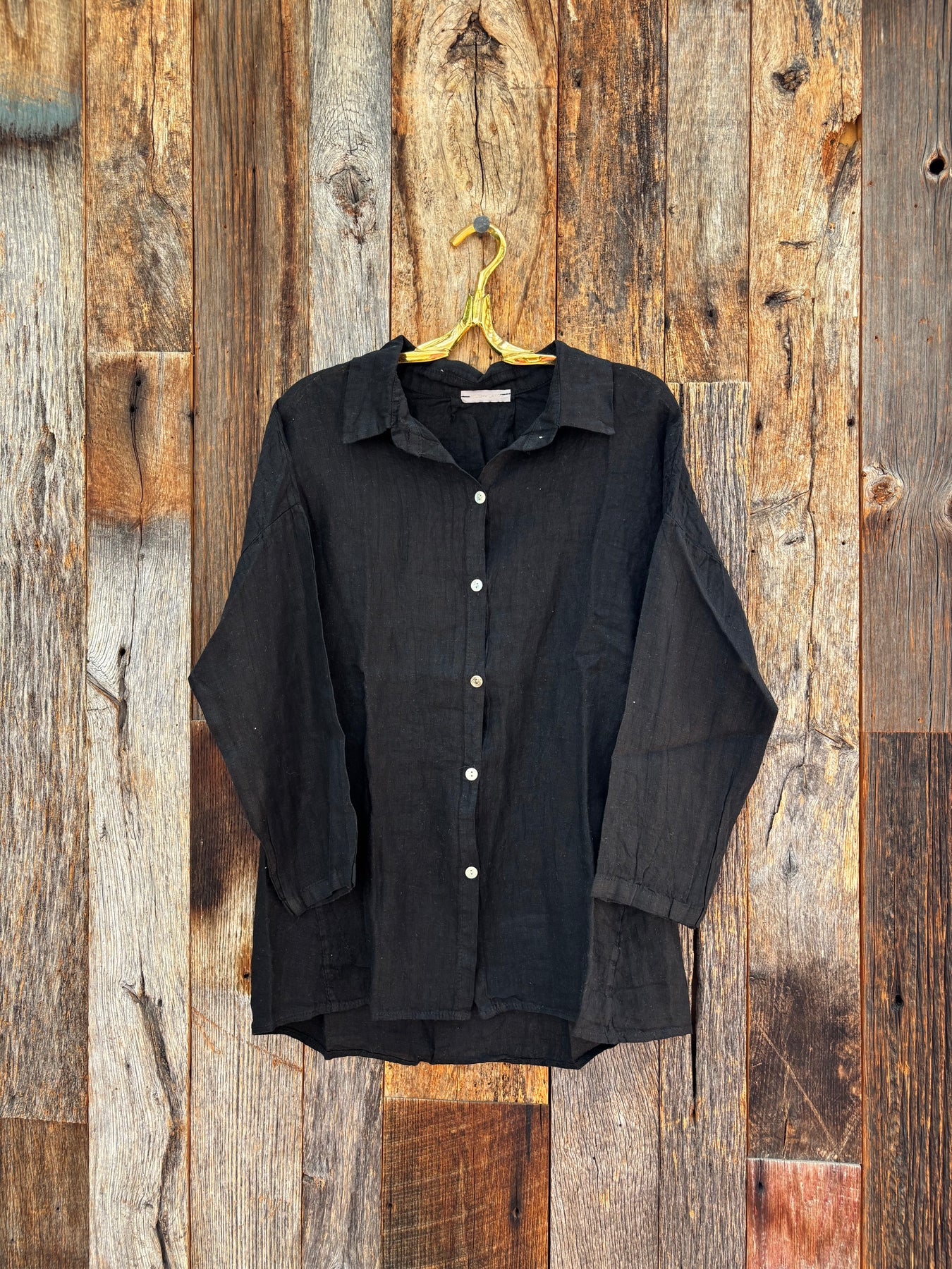 Milio Milano Linen Long Sleeve Button Shirt Black