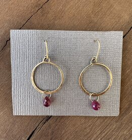 Robin M Designs Robin M 14K Ruby Hammered Hoop Drops